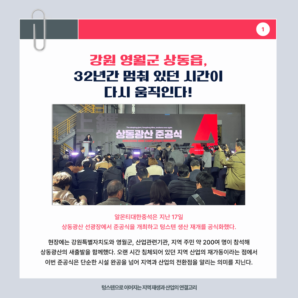 [현장취재] 텅스텐으로 이어지는 지역 재생과 산업의 연결고리, 상동 광산 다시 깨어나다!