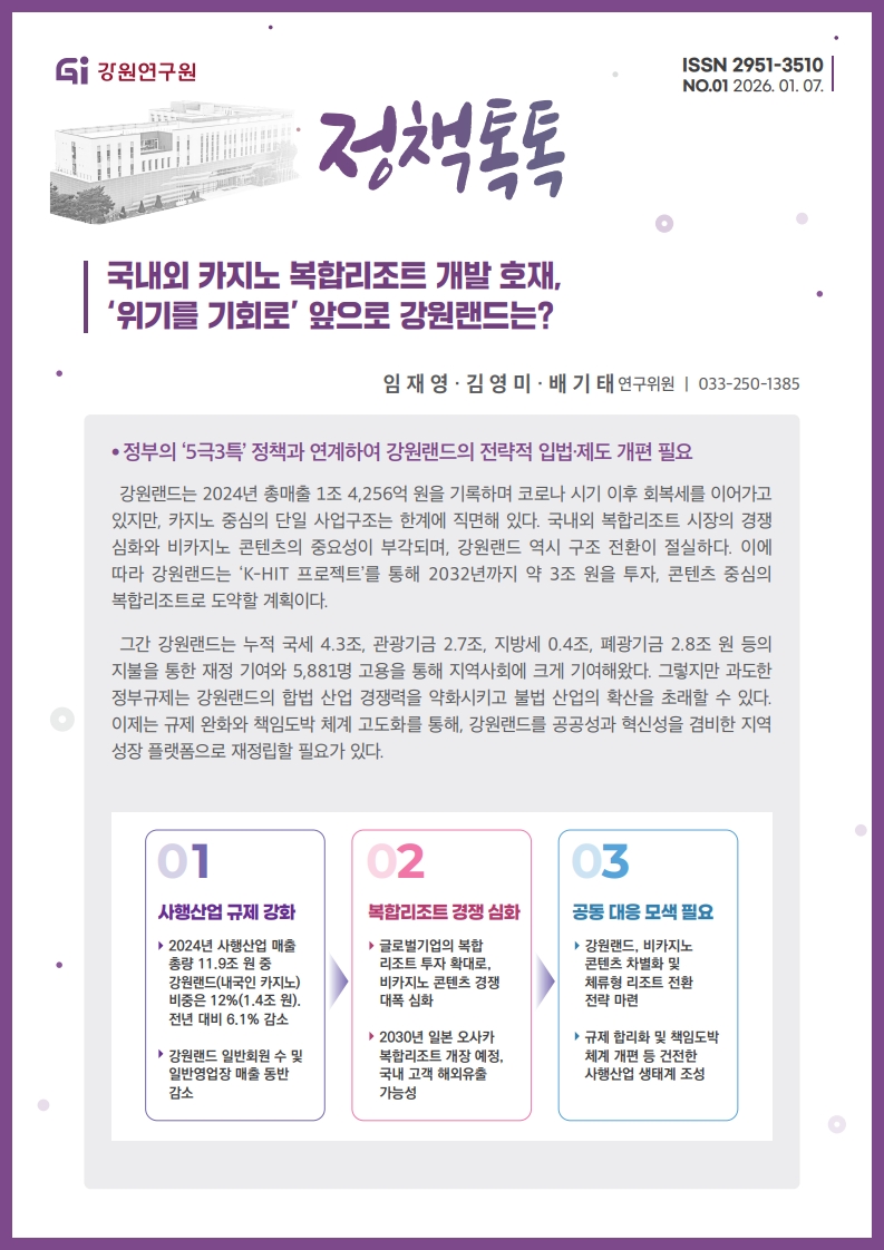 [정책톡톡 2026-1호] 국내외 카지노 복합리조트 개발 호재, '위기를 기회로' 앞으로 강원랜드는?